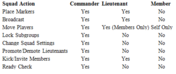 - See the chart attached to the bottom of this post for a comparison of the actions available to commanders, lieutenants, and squad members.